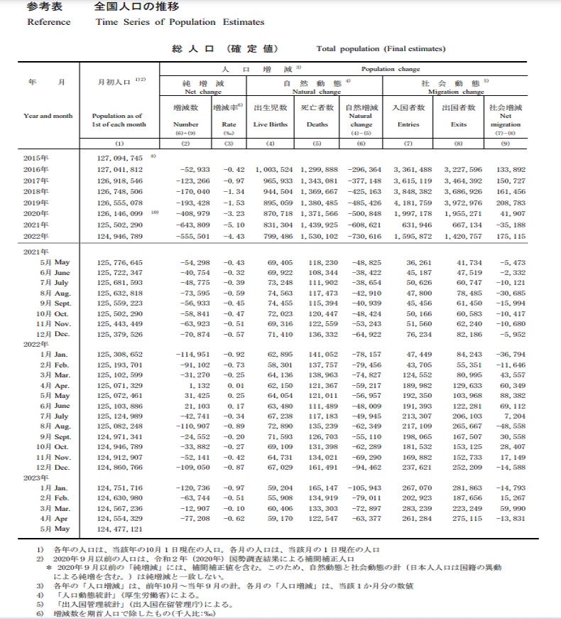 ¡¡¡¡ ¡Ú2023ǯ¡ÊÎáÏÂ5ǯ¡Ë5·î1Æü¸½ºß¡Ê³ÎÄêÃ͡ˡÛ