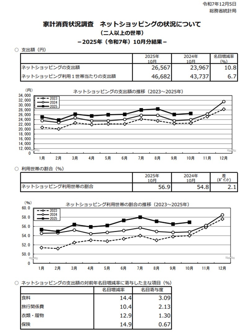 ¥Í¥Ã¥È¥·¥ç¥Ã¥Ô¥ó¥°¤Î¾õ¶·¤Ë¤Ä¤¤¤Æ ¡ÊÆó¿Í°Ê¾å¤ÎÀ¤ÂÓ¡Ë2025ǯ10·îʬ |