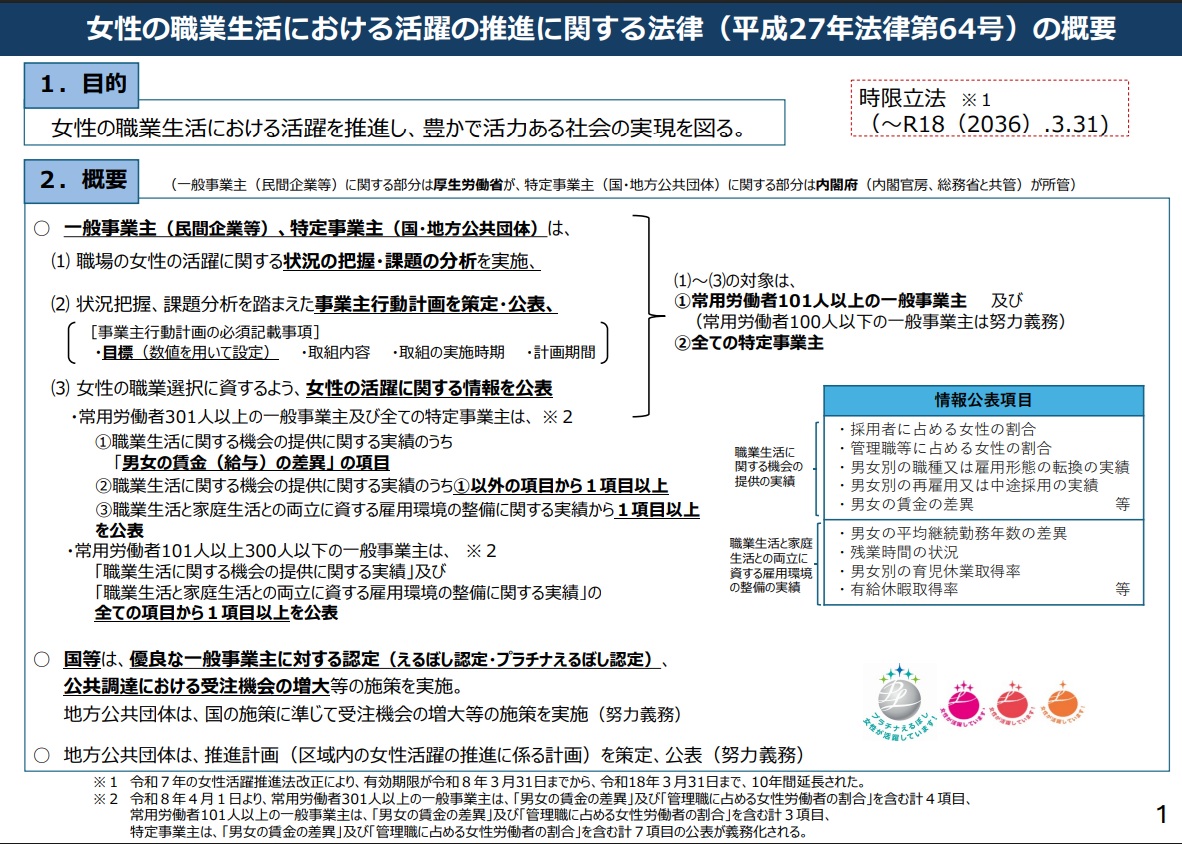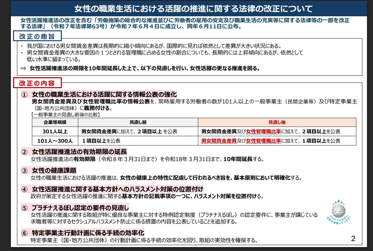 女性の職業生活における活躍の推進に 関する法律の改正等 |