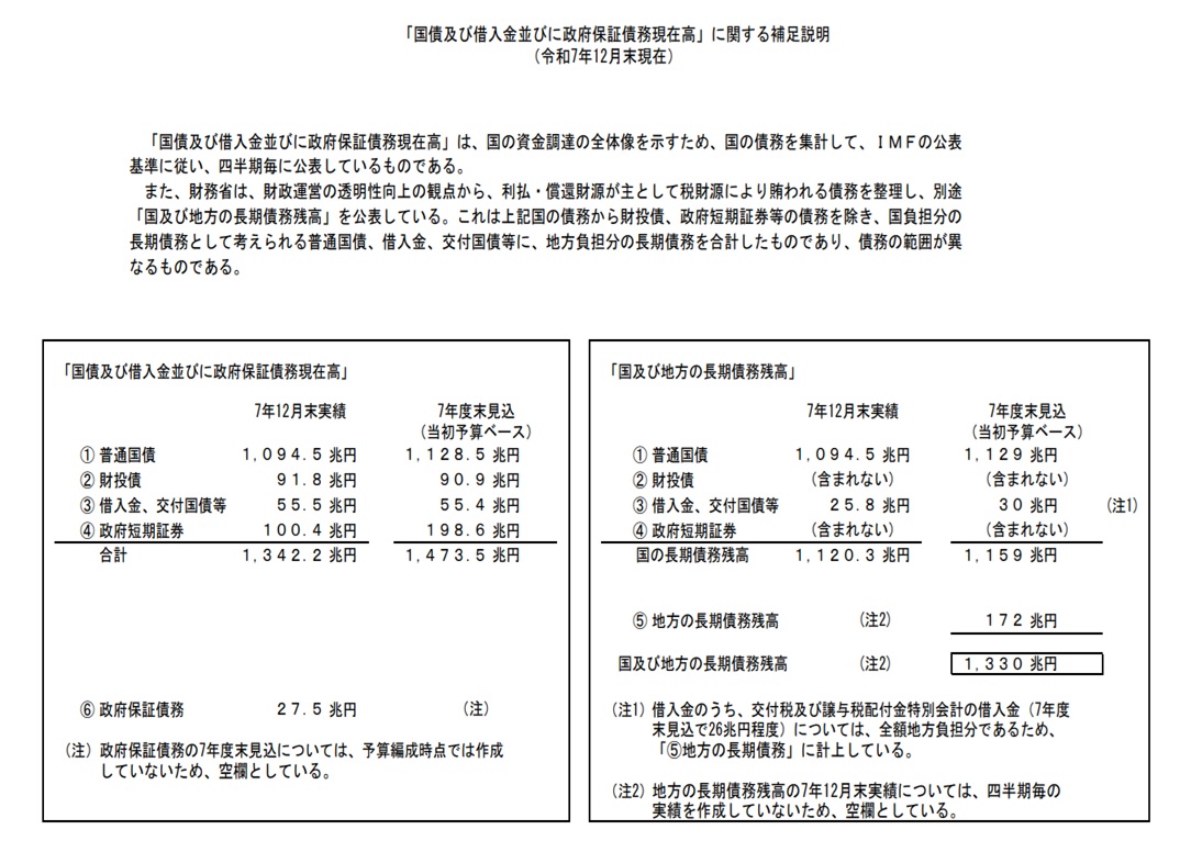 国債及び借入金並びに政府保証債務現在高(令和7年12月末現在) |