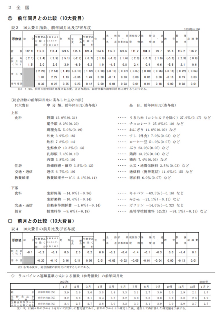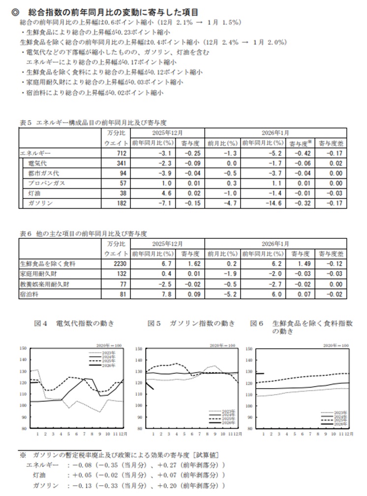 消費者物価指数 全国 2026年(令和8年)1月分前年同月比は1.5%の上昇 |