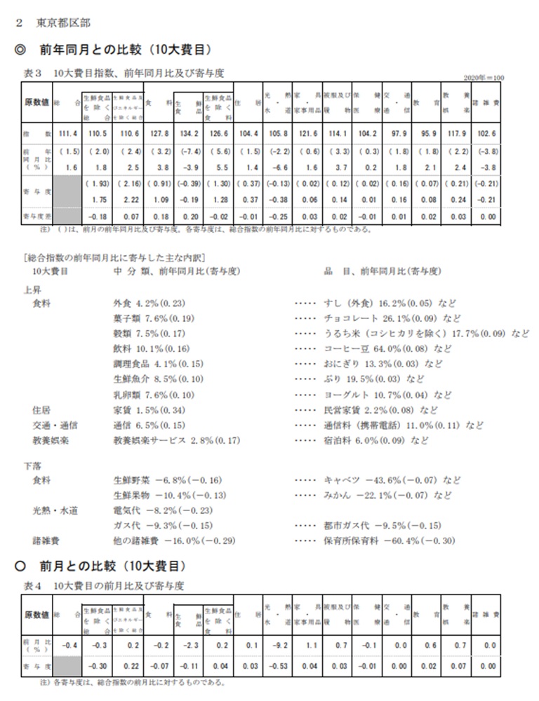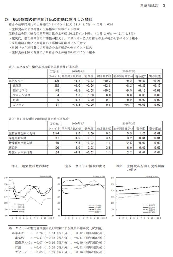 東京都区部 2026年2月分 消 費 者 物 価 指 数 前年同月比1.6%の上昇 |