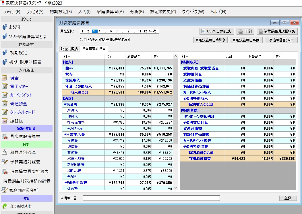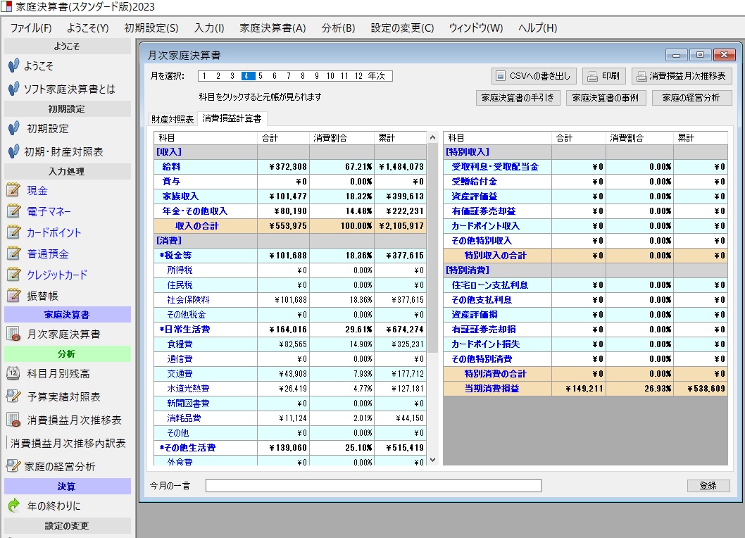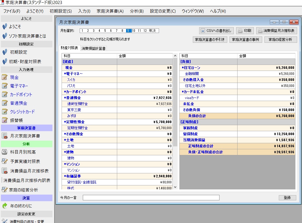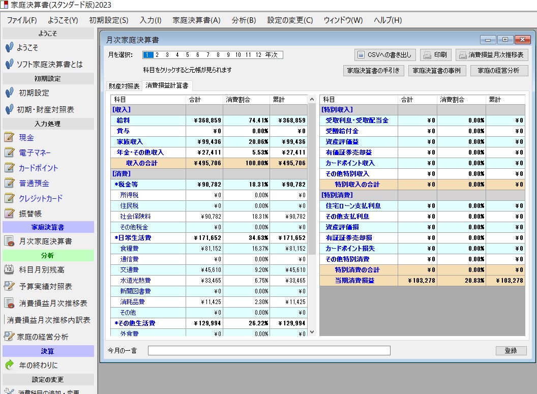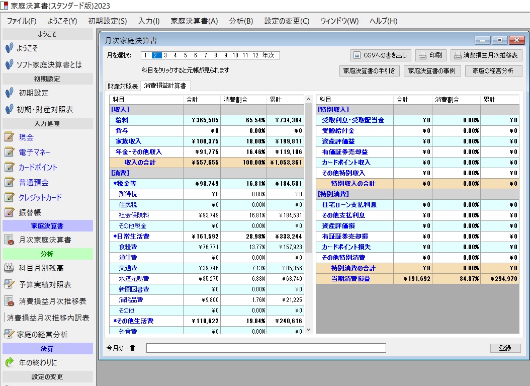 2023年版新・家庭経営ソフト「家庭決算書」