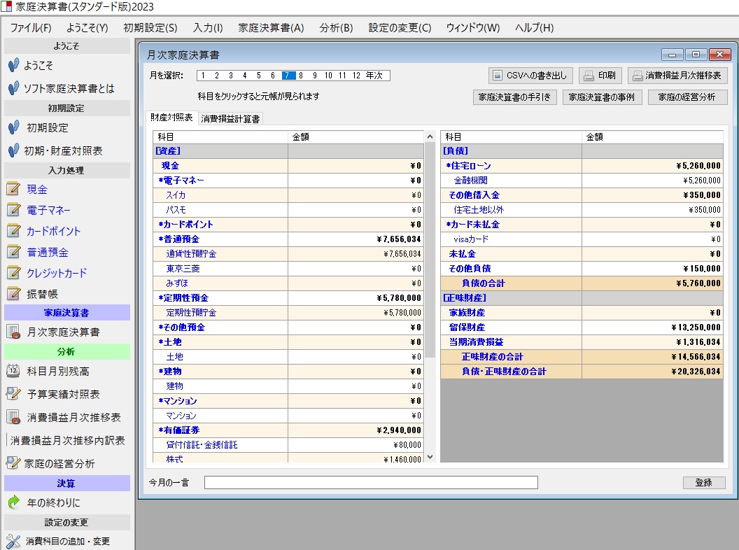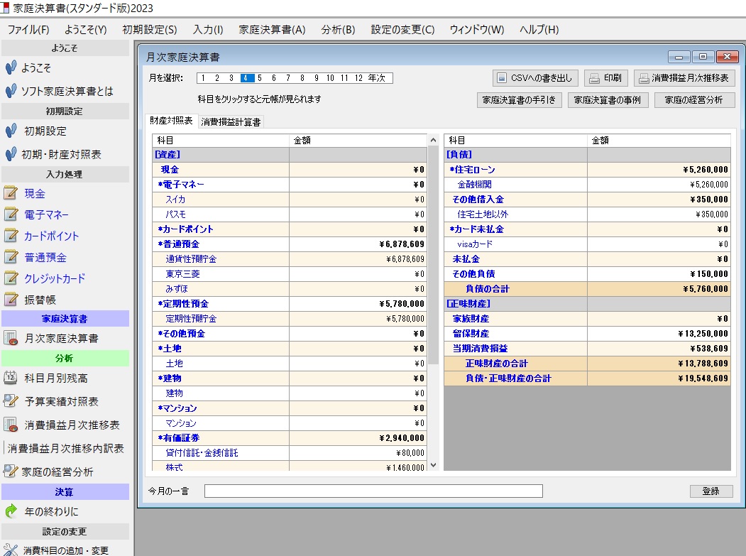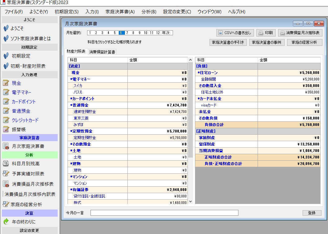 新・家庭経営ソフト「家庭決算書」